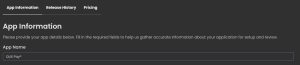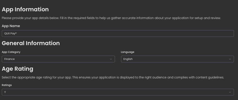 Filling the App Information form (QUX® App Developer)