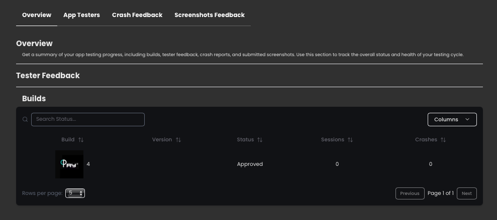 Overview – View tester feedback and builds.