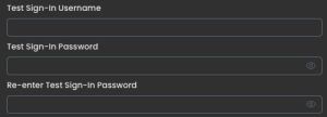 • Re-enter Test Sign-In Password → Confirm password (must match exactly).