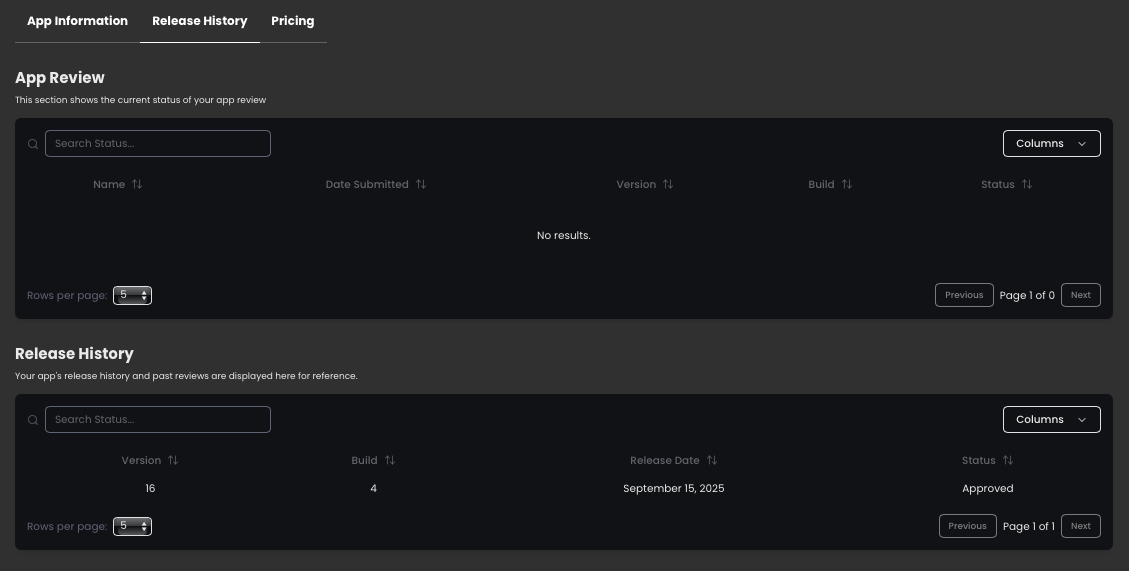View and track all app releases and updates.